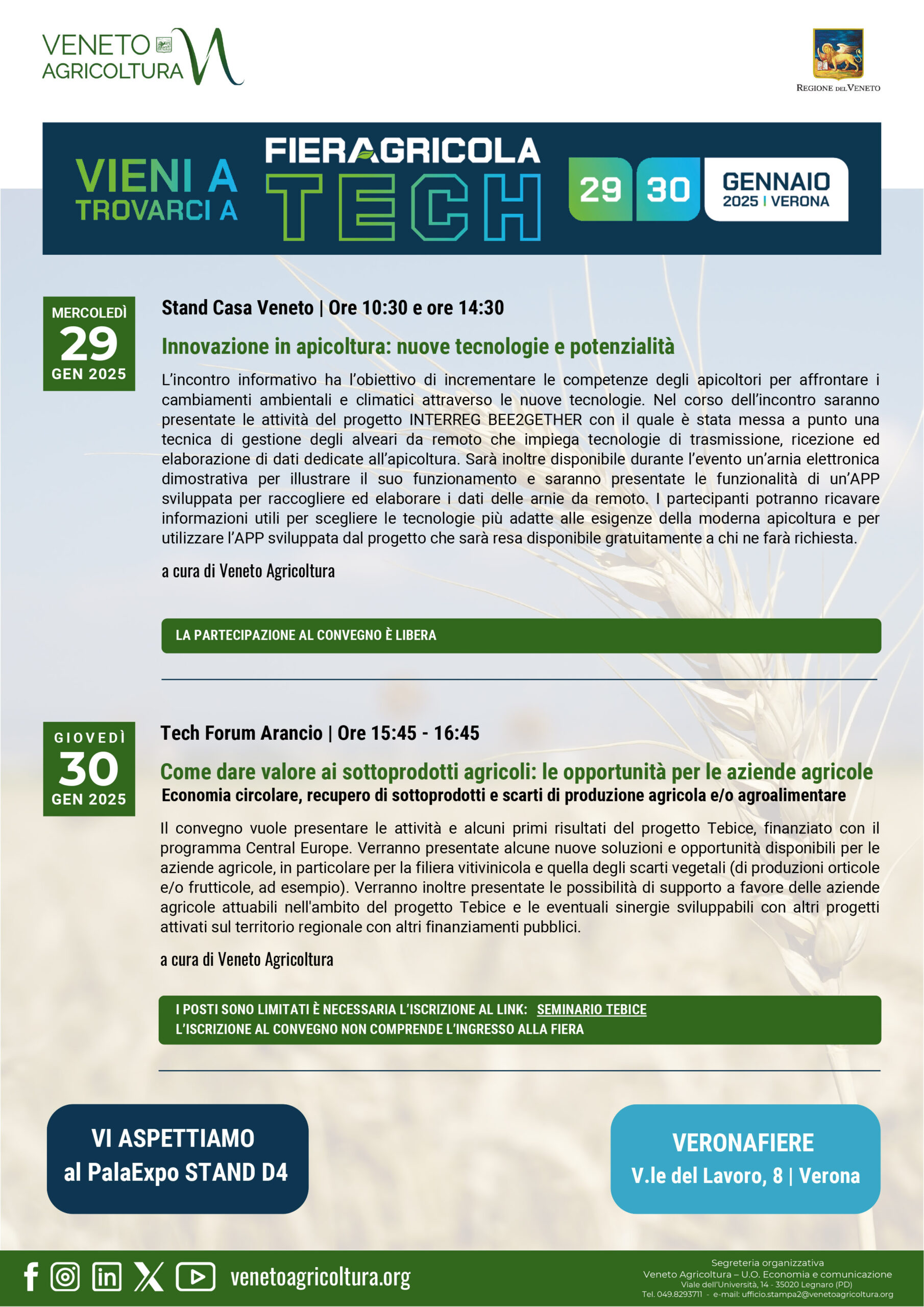Veneto Agricoltura il 29 e 30 gennaio 2025 parteciperà a Fieragricola TECH, uno degli appuntamenti più rilevanti per il mondo agricolo e agroalimentare.