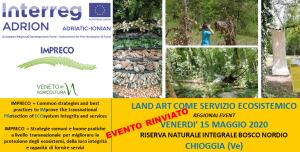 ATTENZIONE: IL SEMINARIO E' RINVIATO A SEGUITO DEL PERDURARE DELLE LIMITAZIONI RELATIVE ALL’EMERGENZA CORONA-VIRUS. (See English text below) N.B. Posti limitati (40 disponibili) si raccomanda di registrare la propria presenza su https://landart-impreco.eventbrite.it SEDE: Veneto Agricoltura -Centro visite della Riserva naturale integrale Bosco Nordio - via Pegorina, 206, Sant’Anna di Chioggia (VE) https://goo.gl/maps/MsSD19WHvnmRZAuW9  GPS: 45.124999, 12.263271 PRESENTAZIONE Veneto Agricoltura, nell’ambito del Progetto IMPRECO (Common strategies and best practices to IMprove the transnational PRotection of ECOsystem integrity and services Programma Interreg-Adrion), ha…