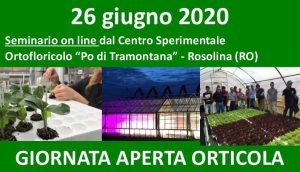 SEMINARIO ON LINE  in collegamento con il Centro Sperimentale Ortofloricolo "Po di Tramontana" ISCRIZIONE OBBLIGATORIA all’indirizzo https://giornataaperta.eventbrite.it Gli iscritti riceveranno via mail entro il giorno precedente l’evento il link per il collegamento PRESENTAZIONE Quest’anno le tradizionali “Giornate aperte” si aprono con una vera e propria “Prima”: confermando l’impegno del Centro al servizio dell’innovazione e per la valorizzazione della tipicità delle produzioni ortofloricole venete, cambia la formula. Da “porte aperte” a “portale aperto”, le nostre sperimentazioni orticole per voi sulle  piattaforme…