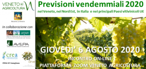 PROGRAMMA (SCARICA DEPLIANT) - DISPONIBILI SLIDE e/o VIDEO DEI DIVERSI INTERVENTI Scarica qui la RELAZIONE GENERALE Ore 10:00 - Saluti e introduzione dei lavori Alberto Negro – Commissario straordinario di Veneto Agricoltura Giuseppe Pan - Assessore all’Agricoltura della Regione Veneto Ore 10:15 - L’andamento meteorologico 2020 nel Veneto Francesco Rech - ARPAV - Servizio Meteorologico Ore 10:30 - La vendemmia 2020 in Italia e non solo - Collegamenti con: Piemonte - Michele Vigasio, Vignaioli Piemontesi Lombardia - Lorenzo Craveri, ERSAF…