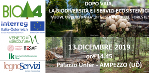 DOPO VAIA, BIODIVERSITÀ E SERVIZI ECOSISTEMICI NUOVE OPPORTUNITA’ DI GESTIONE DELLE FORESTE 13 DICEMBRE 2019 - Ore 14.45 Palazzo Unfer – AMPEZZO (UD) Per una migliore organizzazione dell’incontro è gradita la registrazione su https://biod4ampezzo.eventbrite.it DISPONIBILI LE SLIDE DELLE RELAZIONI - CLICCA SUL TITOLO O SUL NOME DI CIASCUNA RELAZIONE/RELATORE PRESENTAZIONE - SCARICA QUI IL DEPLIANT Veneto Agricoltura e la Cooperativa Legno Servizi organizzano un convegno sulle nuove prospettive gestionali per i boschi nell’era dei cambiamenti climatici. La tempesta Vaia, con…