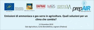 SEDE: Sala Agricoltura - Corte Benedettina , Legnaro (PD) ISCRIZIONI: per motivi organizzativi è richiesta l'iscrizione all'indirizzo http://emissioni.eventbrite.it CREDITI FORMATIVI riconosciuti dall'Ordine dei Dottori agronomi e Dottori forestali di Padova PROGRAMMA (scarica la locandina) 9:00-9:30 Registrazione 9:30-9:40 Saluti delle Autorità: Assessore Giuseppe Pan, Gianni Barcaccia (Direttore DAFNAE), Alessandro Zotti (Direttore MAPS) Parte generale 9:40-10:00 Eleonora Di Cristofaro, ISPRA “Direttiva NEC ed Emissioni di ammoniaca in agricoltura: implicazioni per il comparto agrozootecnico” 10:00-10:20 Ilaria Falconi, DISR 3 - MIPAAF “Emissioni climalteranti…
