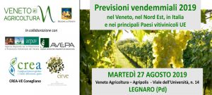 PRESENTAZIONE Focus sulle previsioni vendemmiali, secondo incontro del Trittico Vitivinicolo 2019, che come è ormai tradizione fornisce un quadro previsionale della vendemmia nel Nord Est, nelle altre principali Regioni viticole italiane, nonché in Francia e Spagna. La “storica” iniziativa, giunta quest’anno alla sua 45^ edizione, è promossa da Veneto Agricoltura-Ufficio Stampa, d’intesa con Regione Veneto, AVEPA, ARPAV, CREA-VE, Regione Autonoma Friuli-Venezia Giulia e Province Autonome di Bolzano e Trento. I dati di previsione vendemmiale, acquisiti sul territorio dagli Uffici preposti…
