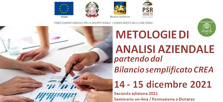 OBIETTIVI Il corso ha l’obiettivo di fornire ai consulenti impegnati nei “Percorsi di consulenza” della mis 2 PSR Veneto che prevedono l’utilizzo del “Bilancio semplificato CREA”, elementi utili ad una migliore comprensione e quindi esposizione all’imprenditore degli Indici di bilancio elaborati dall’applicativo “BS” e di come questi possano contribuire alla formulazione del progetto di consulenza. A tal fine durante il corso si svilupperà una analisi partecipata di alcuni casi aziendali.