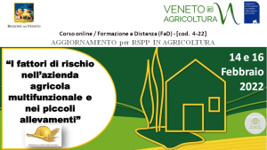 “I FATTORI DI RISCHIO NELL’AZIENDA AGRICOLA MULTIFUNZIONALE E NEI PICCOLI ALLEVAMENTI” AGGIORNAMENTO INTERTEMATICO per RSPP IN AGRICOLTURA corso valido per l’assolvimento dell’obbligo di aggiornamento ACCORDO STATO-REGIONI DEL 7 LUGLIO 2016 (Settore ATECO A) Corso online / Formazione a Distanza (FaD) - PRESENTAZIONE L'art. 32 comma 6 del D.Lgs 81/2008, Testo Unico in materia di Salute e Sicurezza sul lavoro, prevede che i Responsabili dei Servizi di Prevenzione e Protezione sui luoghi di lavoro (RSPP) siano tenuti a frequentare corsi di…