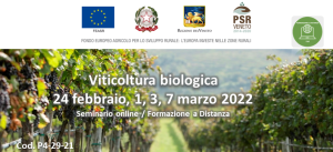 Viticoltura biologica - 24 febbraio, 1, 3, 7 marzo 2022 Seminario online / Formazione a Distanza- Cod. P4-29-21 PER SCARICARE LE PRESENTAZIONI CLICCA SUI TITOLI NEL PROGRAMMA SOTTOSTANTE La presente iniziativa formativa rientra nel Programma di formazione dei consulenti che operano o intendono operare nell’ambito della Mis. 2 PSR «Servizi di consulenza, di sostituzione e di assistenza alla gestione delle aziende agricole». In particolare, l’argomento sviluppato attraverso l’iniziativa formativa fa riferimento agli Ambiti di consulenza n. 2 e 13. Il…