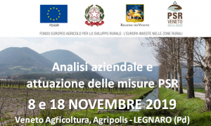 Analisi aziendale e attuazione delle misure PSR – (2° edizione) 8 e 18 novembre 2019 Cod. 2A-37-19 NB - Modalità di partecipazione - La partecipazione al corso è gratuita. E’ obbligatoria l’iscrizione secondo le modalità indicate di seguito. PROGRAMMA (SCARICA QUI DEPLIANT) VENERDI’ 8 NOVEMBRE 2019 9.00 –13.00 PSR 2014-2020: stato di attuazione e prossimi bandi Alberto Andriolo– Direzione Agroalimentare, Regione del Veneto e responsabili regionali di Misura 13.00 – Test di apprendimento (prima parte)…