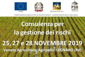 Consulenza per la gestione dei rischi - 25, 27 e 28 novembre 2019 - Veneto Agricoltura – Agripolis-Legnaro (Pd) NB - La partecipazione al corso è gratuita. E’ obbligatoria l’iscrizione secondo le modalità indicate di seguito che si invita a leggere attentamente, in particolare quelle relative alle modalità di partecipazione, iscrizione e attestato di frequenza con profitto. PROGRAMMA (Scarica depliant programma pdf) LUNEDÌ 25 NOVEMBRE 2019 9.00 - Politiche e strumenti per la gestione dei rischi in agricoltura a livello…